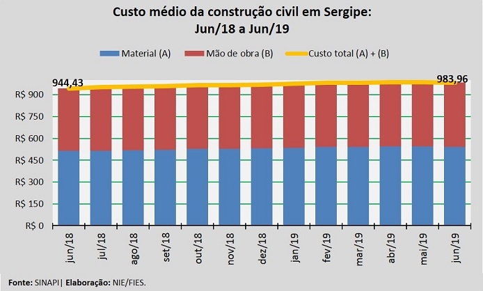 Análise realizada pelo Boletim Sergipe Econômico, parceria do Núcleo de Informações Econômicas (NIE) da Federação das Indústrias do Estado de Sergipe (FIES) e do Departamento de Economia da UFS, com base nos dados do Sistema Nacional de Pesquisa de Custos e Índices da Construção Civil – SINAPI, uma produção conjunta do IBGE e da Caixa Econômica Federal, revelou que o custo médio da construção em Sergipe, por metro quadrado (m²), em junho deste ano, registrou queda de 0,2%, quando comparado com o mês imediatamente anterior, maio último.