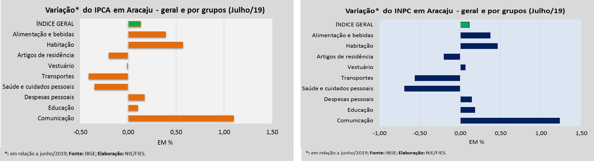 Análise realizada pelo Boletim Sergipe Econômico, parceria do Núcleo de Informações Econômicas da Federação das Indústrias do Estado de Sergipe (FIES) e do Departamento de Economia da UFS, com base nos dados do Instituto Brasileiro de Geografia e Estatística (IBGE), revelou que a capital sergipana, em julho deste ano, teve inflação de 0,13%, medida pelo Índice de Preços ao Consumidor Amplo – IPCA.