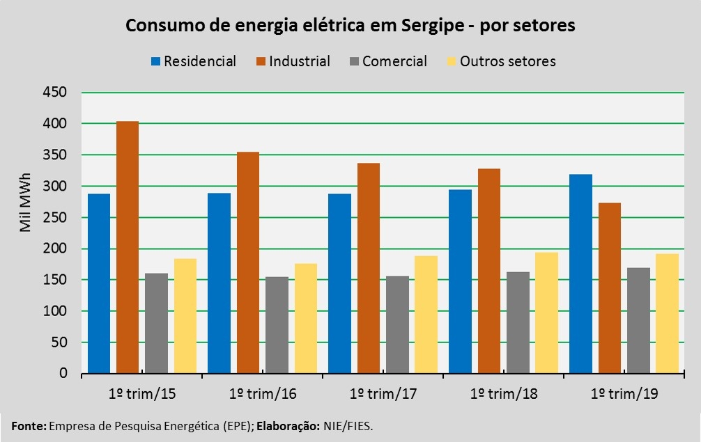 Análise realizada pelo Boletim Sergipe Econômico, parceria do Núcleo de Informações Econômicas (NIE) da Federação das Indústrias do Estado de Sergipe (FIES) e do Departamento de Economia da UFS, com base nos dados da Empresa de Pesquisa Energética (EPE) que tem por finalidade prestar serviços ao Ministério de Minas e Energia (MME), constatou que o consumo total de energia elétrica no estado chegou a 953,4 mil MWh (Megawatt-hora), no primeiro trimestre de 2019.