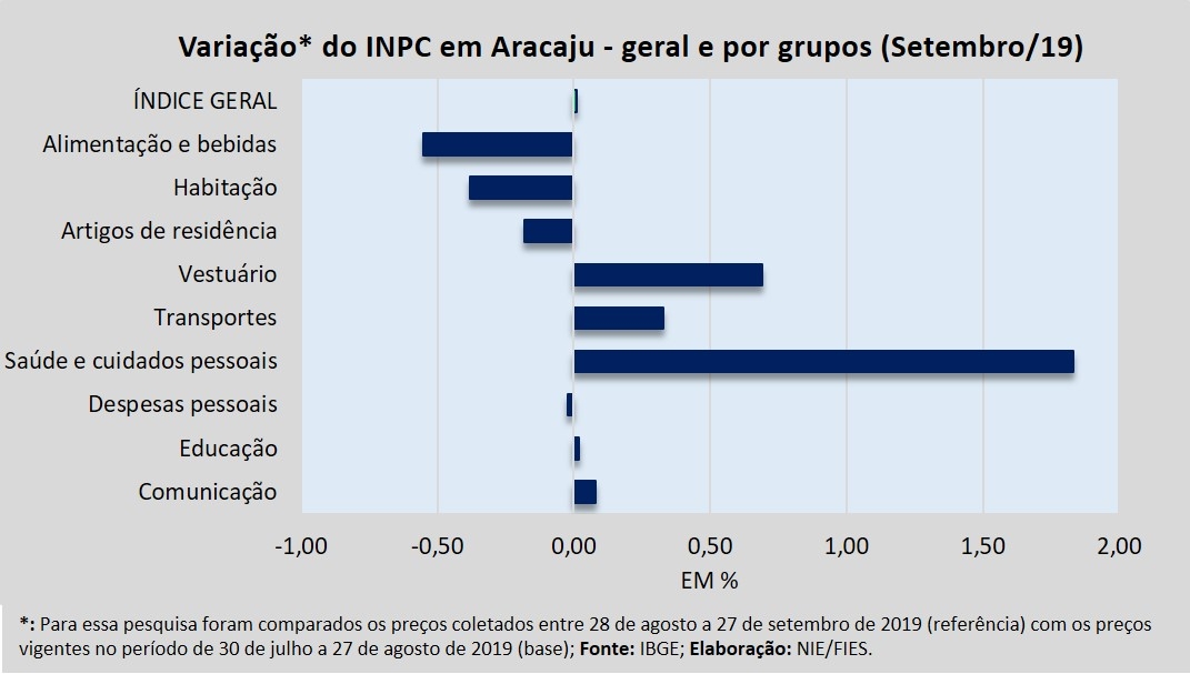 Para esse público, a pesquisa é feita através do Índice Nacional de Preços ao Consumidor (INPC), que registrou inflação de 0,01%, em setembro de 2019. O intervalo de comparação é o mesmo do IPCA descrito acima.