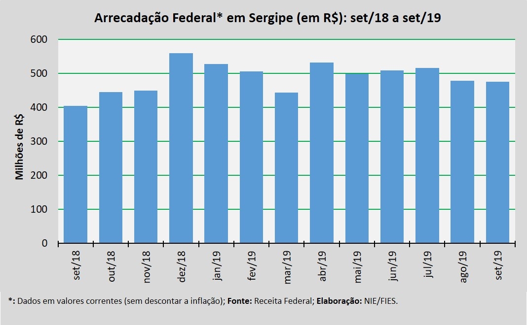 Detalhes da Arrecadação Federal de setembro/2019 em Sergipe
