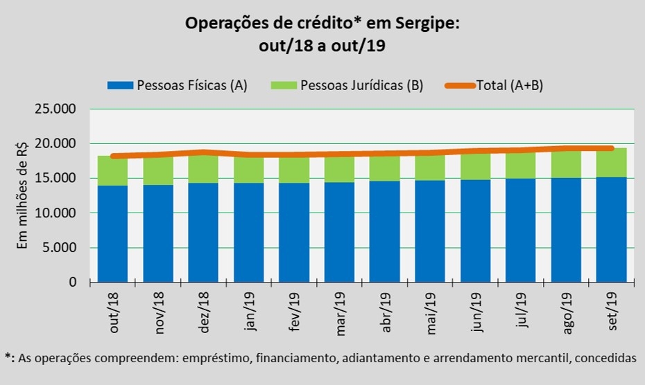 As operações compreendem: empréstimo, financiamento, adiantamento e arrendamento mercantil, concedidas pelas instituições integrantes do Sistema Financeiro Nacional (SFN) que atuam no estado.