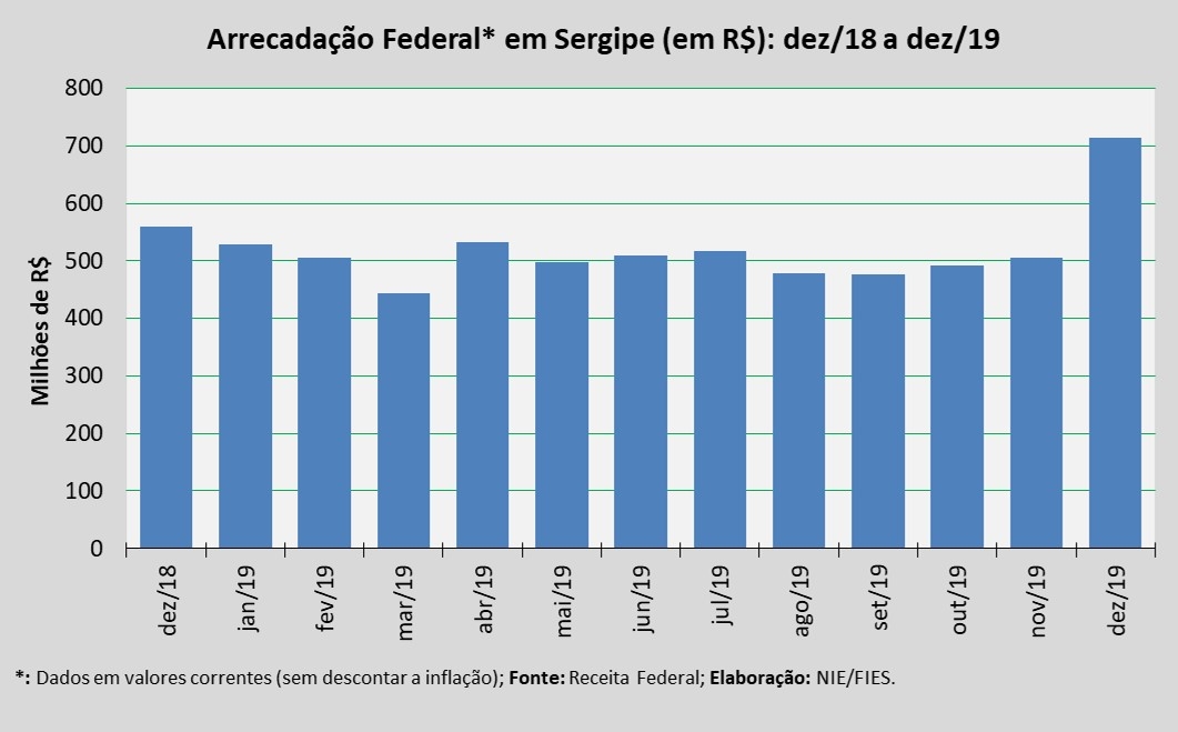 Arrecadação Federal em dezembro/2019 em Sergipe