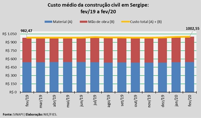 Análise realizada pelo Boletim Sergipe Econômico, parceria do Núcleo de Informações Econômicas da Federação das Indústrias do Estado de Sergipe (FIES) e do Departamento de Economia da UFS, com base nos dados do Sistema Nacional de Pesquisa de Custos e Índices da Construção Civil – SINAPI, do IBGE e da Caixa Econômica Federal, revelou que o custo médio da construção em Sergipe, por metro quadrado (m²), em fevereiro deste ano, registrou aumento de 0,5%, quando comparado com o mês imediatamente anterior, janeiro último. Na comparação com o mês de fevereiro do ano passado, o custo registrado apresentou aumento de 2,0%.