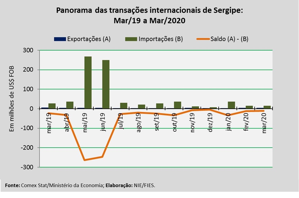 Com esses dados, o saldo da balança comercial sergipana - diferença entre o montante de exportações e importações -, no período analisado, resultou em saldo negativo de US$ 10,2 milhões.