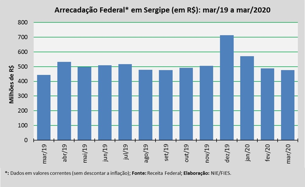 Detalhes da Arrecadação Federal de março/2020 em Sergipe