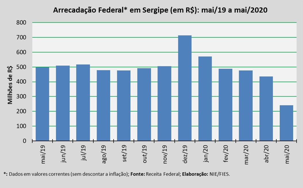 Detalhes da Arrecadação Federal de maio/2020 em Sergipe