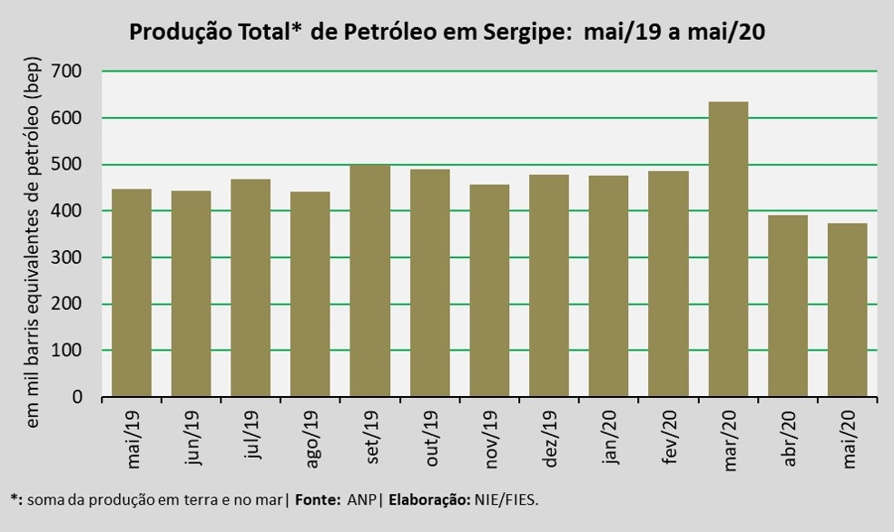 Análise realizada pelo Boletim Sergipe Econômico, parceria do Núcleo de Informações Econômicas da Federação das Indústrias do Estado de Sergipe (FIES) e do Departamento de Economia da UFS, com base nos dados da Agência Nacional do Petróleo, Gás Natural e Biocombustíveis (ANP), mostrou que a produção de petróleo no estado, em maio deste ano, foi de aproximadamente 373 mil barris equivalentes de petróleo (BEP), assinalando queda de 4,7% em relação à produção do mês anterior, abril último.