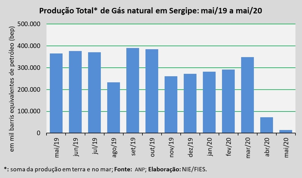 [i] A intensa queda da produção sergipana no mar para o período pode estar relacionada à interrupção temporária da produção em 34 campos, em maio, devido aos efeitos da pandemia, segundo divulgado pela ANP no Boletim da Produção de Petróleo e Gás Natural de maio/2020 (nº 117). Destes, 3 são campos marítimos sergipanos, correspondendo a 20 Unidades Estacionárias de Produção (marítimas) com suas produções interrompidas.