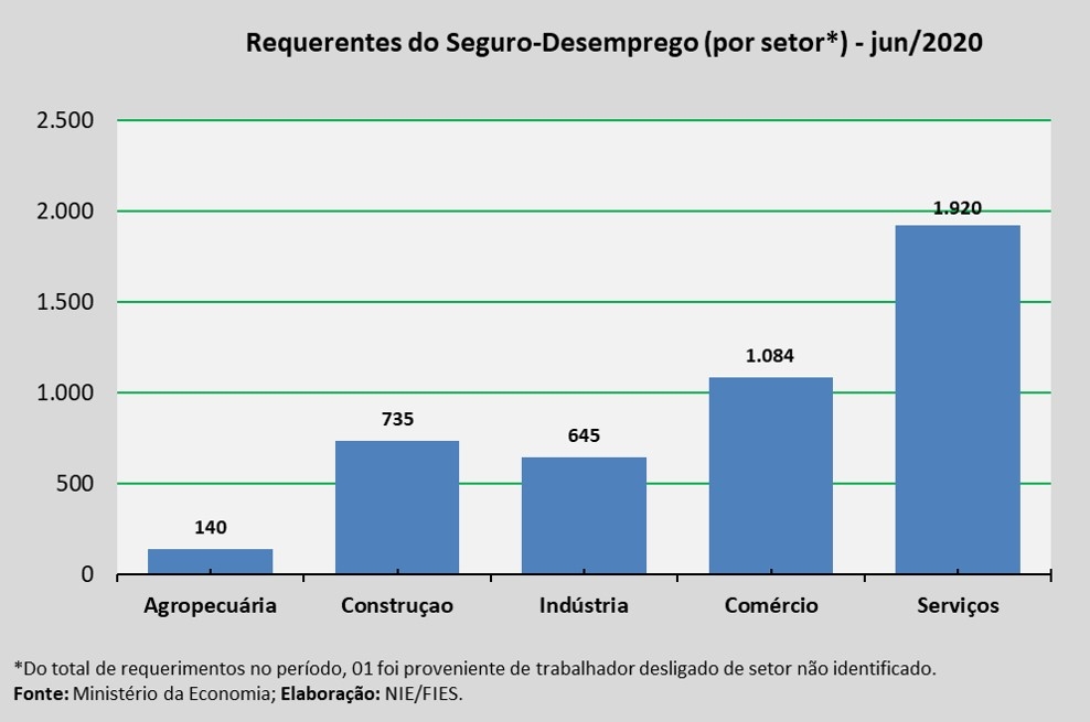 Solicitações de seguro-desemprego por setor em junho/2020
