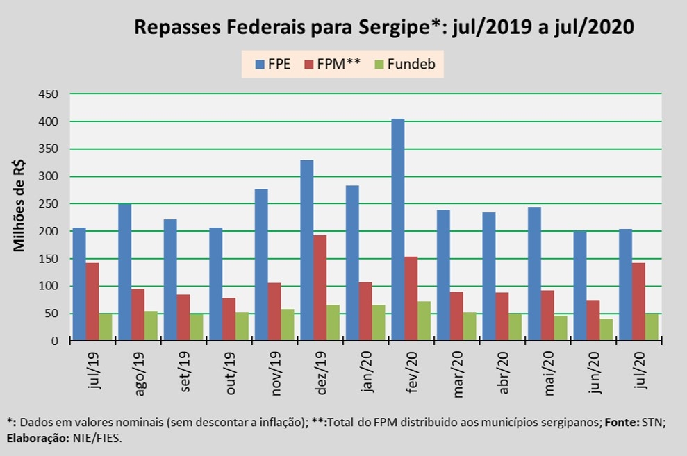 Análise realizada pelo Boletim Sergipe Econômico, parceria do Núcleo de Informações Econômicas da Federação das Indústrias do Estado de Sergipe (FIES) e do Departamento de Economia da UFS, com base nos dados da Secretaria do Tesouro Nacional (STN), indicou que o repasse do Fundo de Participação dos Estados (FPE) para Sergipe, em julho deste ano, chegou a R$ 203,9 milhões.