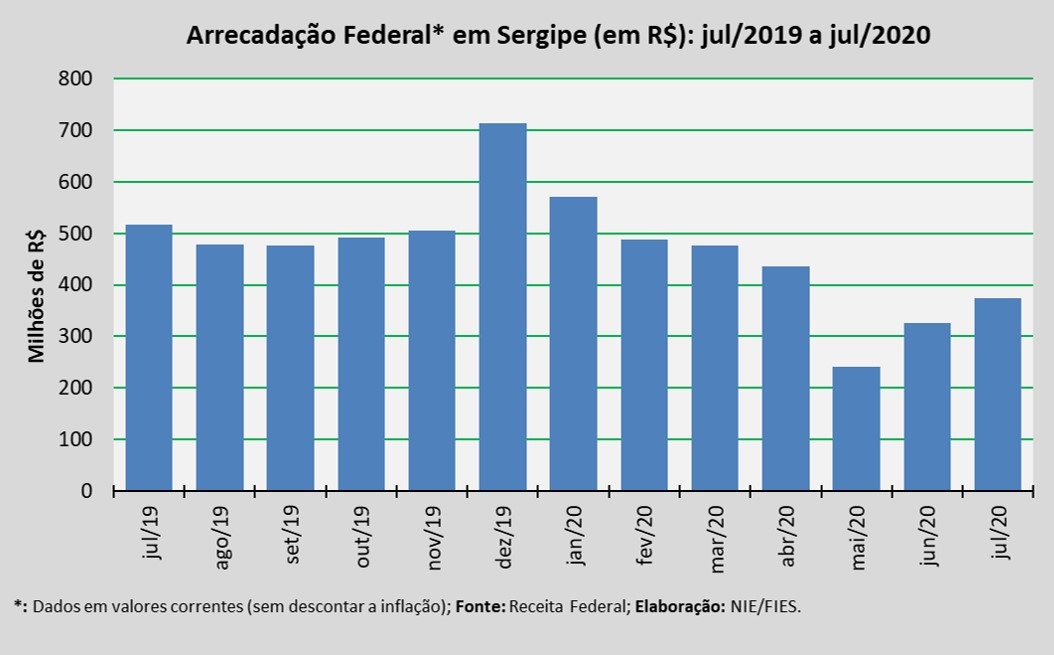Detalhes da Arrecadação Federal de julho/2020 em Sergipe