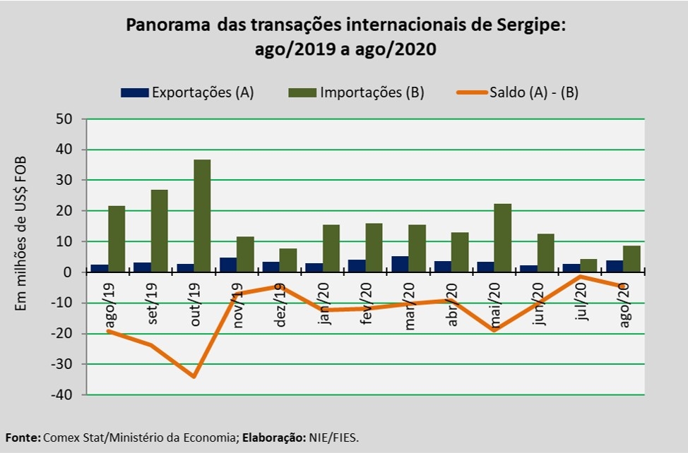 Com esses dados, o saldo da balança comercial sergipana - diferença entre o montante de exportações e importações -, no período analisado, resultou em saldo negativo de US$ 4,6 milhões.