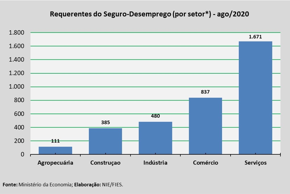 Solicitações de seguro-desemprego por setor em agosto/2020