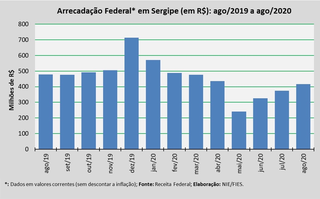 Detalhes da Arrecadação Federal de agosto/2020 em Sergipe