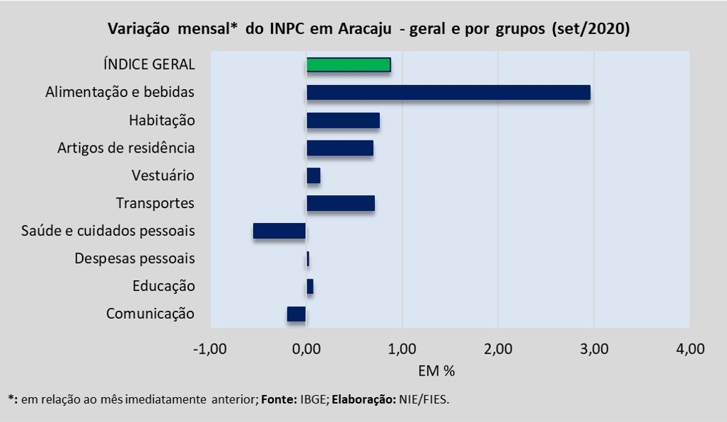 Com o resultado de setembro, a inflação acumulada de janeiro a setembro de 2020 chegou a 1,89%. Registre-se ainda que o índice é calculado para a cidade de Aracaju e outras quinze capitais e regiões metropolitanas do país.