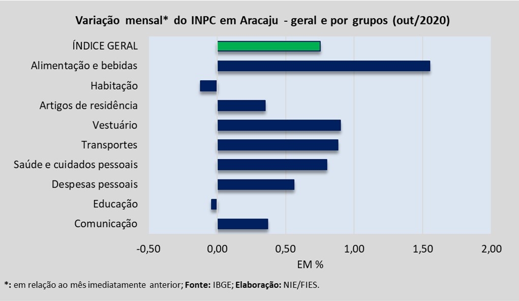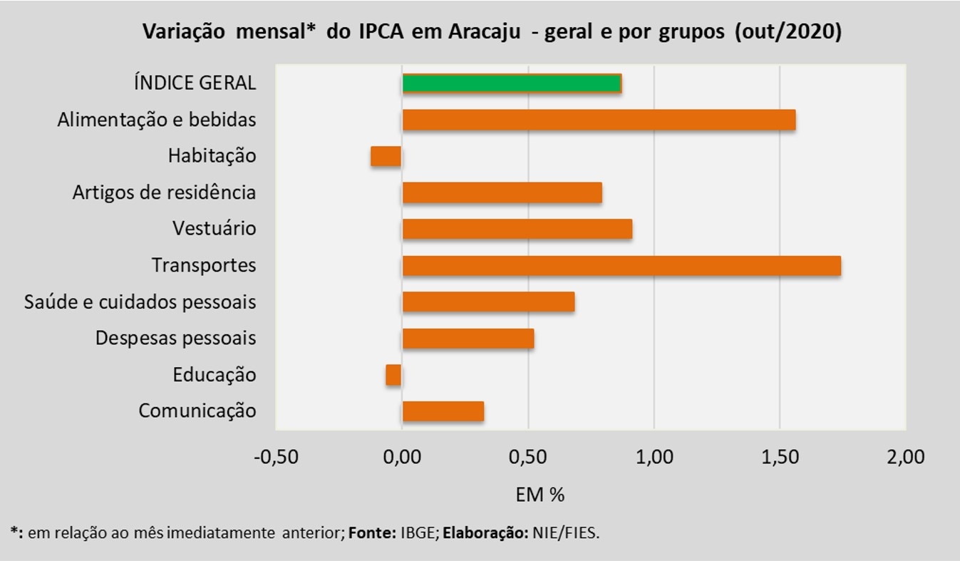 Com o resultado de outubro, a inflação acumulada de janeiro a outubro de 2020 chegou a 2,78%. Registre-se ainda que o índice é calculado para a cidade de Aracaju e outras quinze capitais e regiões metropolitanas do país.