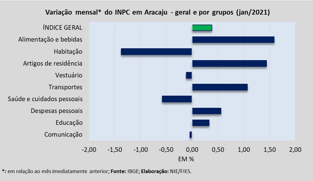 Para esse público, a pesquisa é feita através do Índice Nacional de Preços ao Consumidor (INPC), que registrou inflação de 0,38%, em janeiro de 2021. O intervalo de comparação é o mesmo do IPCA descrito acima.