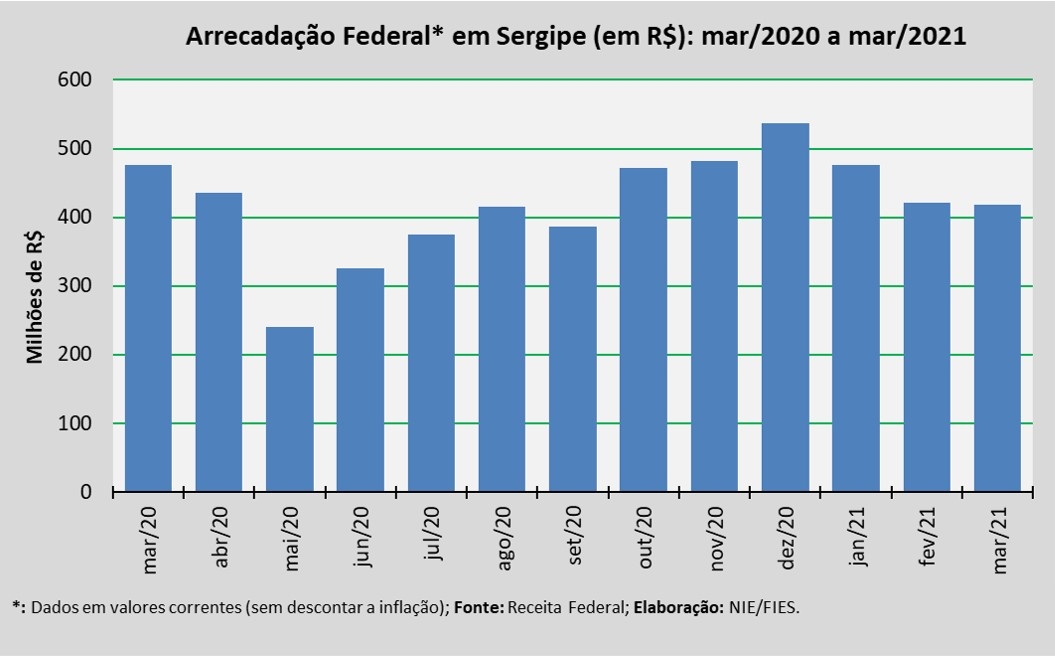 Detalhes da Arrecadação Federal de março/2021 em Sergipe