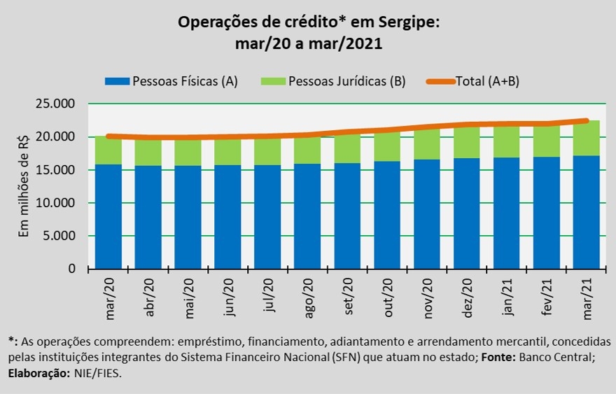 Análise realizada pelo Boletim Sergipe Econômico, parceria do Núcleo de Informações Econômicas da Federação das Indústrias do Estado de Sergipe (FIES) e do Departamento de Economia da UFS, com base nos dados do Banco Central, revelou que o saldo total das operações de crédito em Sergipe, em março do ano corrente, somou quase R$ 22,5 bilhões, registrando o maior valor da série histórica iniciada em 2004.