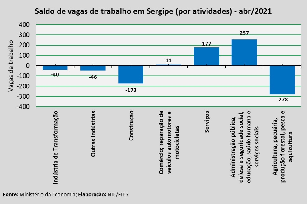 Análise realizada pelo Boletim Sergipe Econômico, parceria do Núcleo de Informações Econômicas da Federação das Indústrias do Estado de Sergipe (FIES) e do Departamento de Economia da UFS, com base nos dados do Novo Cadastro Geral de empregados e desempregados (Caged) da Secretaria de Trabalho do Ministério da Economia, revelou que houve saldo negativo de 92 vagas de emprego com carteira assinada no estado, em abril deste ano. O saldo decorre da diferença entre 6.110 admissões e 6.202 desligamentos, no período analisado.