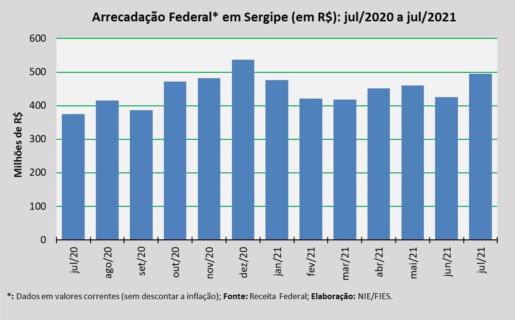 Detalhes da Arrecadação Federal de julho/2021 em Sergipe