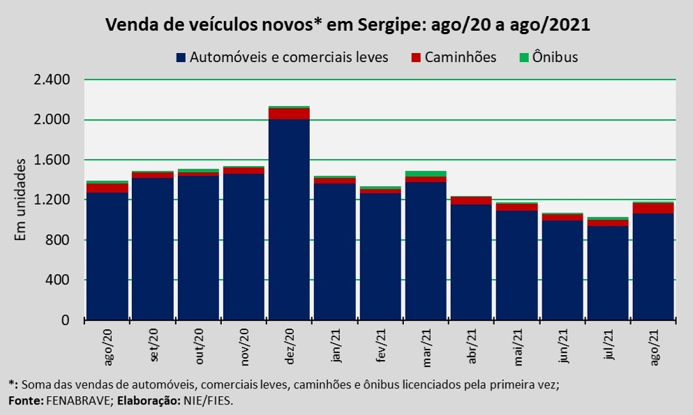 Análise realizada pelo Boletim Sergipe Econômico, parceria do Núcleo de Informações Econômicas (NIE) da Federação das Indústrias do Estado de Sergipe (FIES) e do Departamento de Economia da UFS, com base nos dados da Federação Nacional da Distribuição de Veículos Automotores (FENABRAVE), apontou que as vendas de veículos novos no estado, no sétimo mês do ano, totalizaram 1.184 unidades.