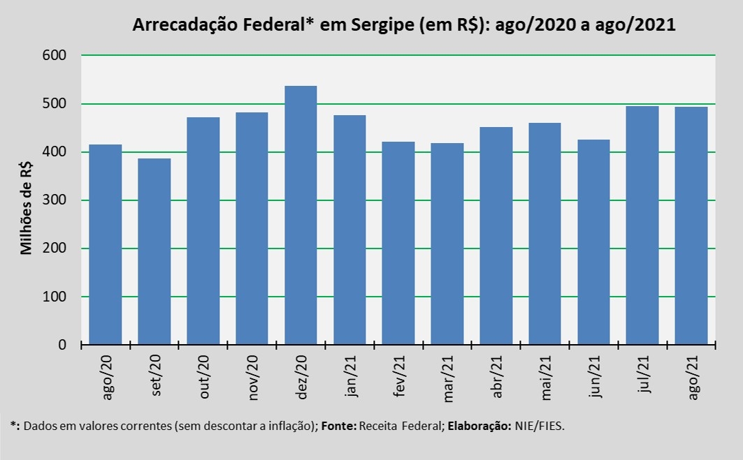 Detalhes da Arrecadação Federal de agosto/2021 em Sergipe
