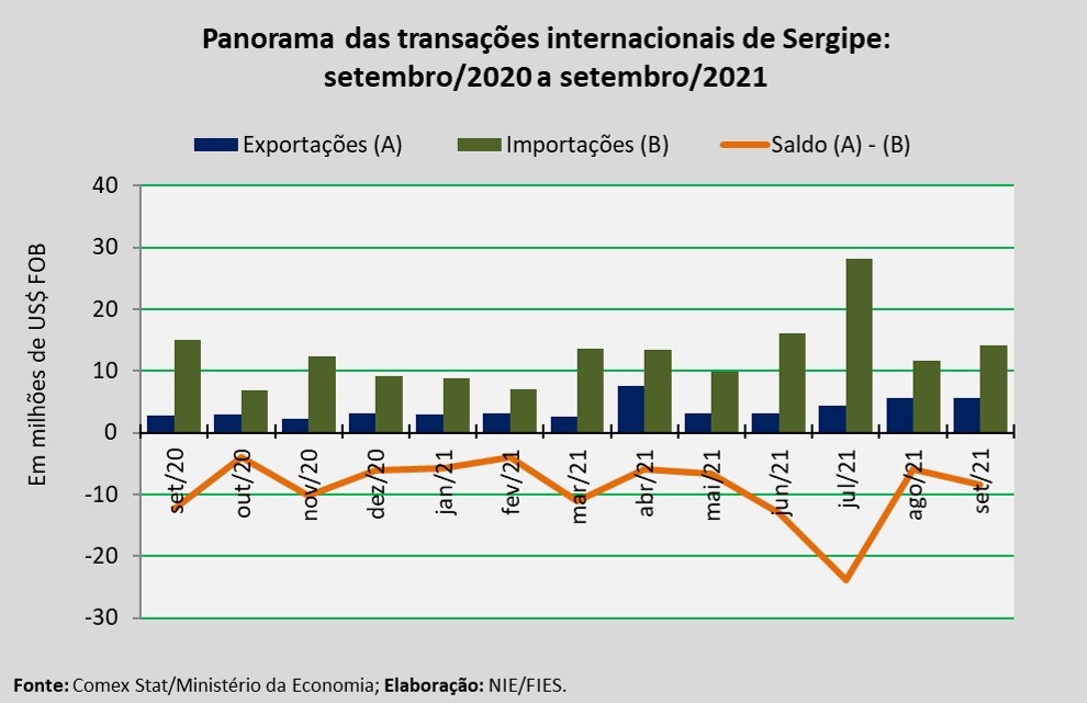 Importações sergipanas em setembro/2021