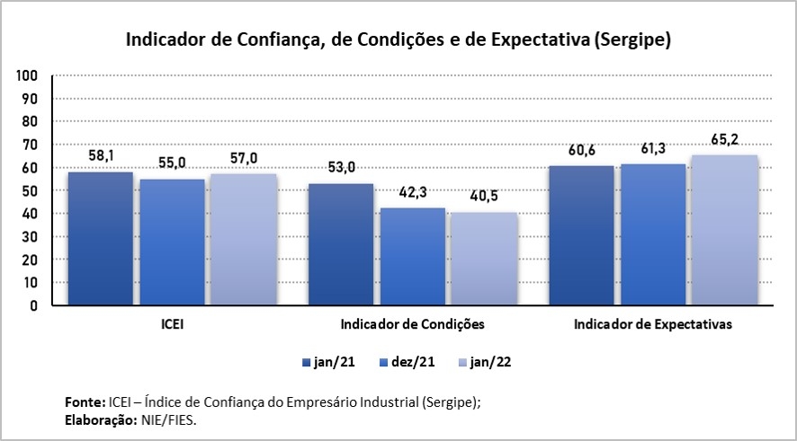 A Sondagem Industrial de Sergipe elaborada pelo Núcleo de Informações Econômicas (NIE), da Federação das Indústrias do Estado de Sergipe (FIES), revelou que a confiança do empresário industrial sergipano permaneceu acima da sua média histórica. O ICEI - Índice de Confiança do Empresário Industrial, em janeiro de 2022, alcançou 57,0 pontos, em Sergipe, após crescimento de 2,0 pontos, na comparação com dezembro último.