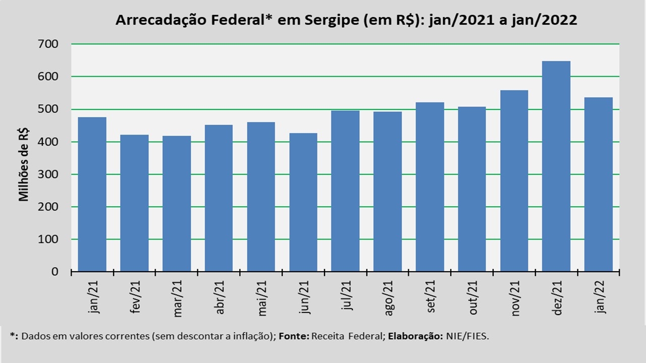 Detalhes da Arrecadação Federal de janeiro/2022 em Sergipe