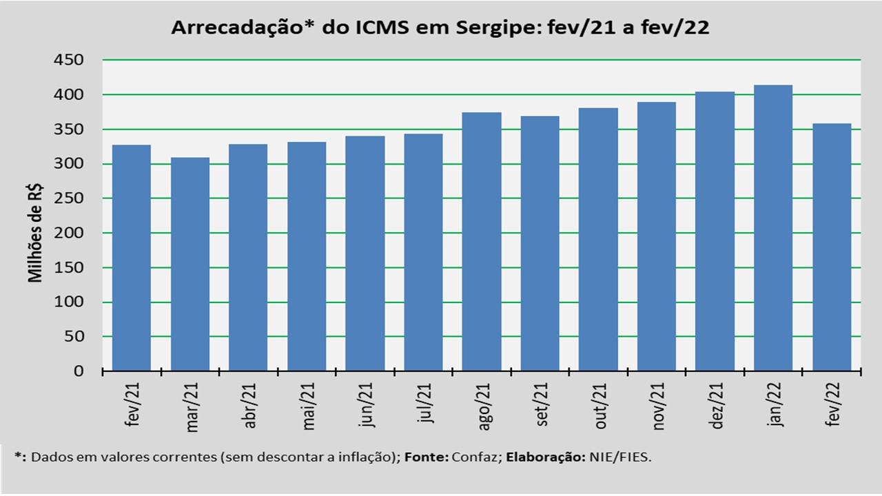 Arrecadação do ICMS em Sergipe – fevereiro 2022 | |
