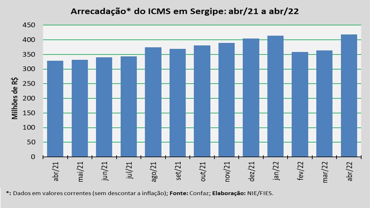 Arrecadação do ICMS em Sergipe – abril 2022 | |